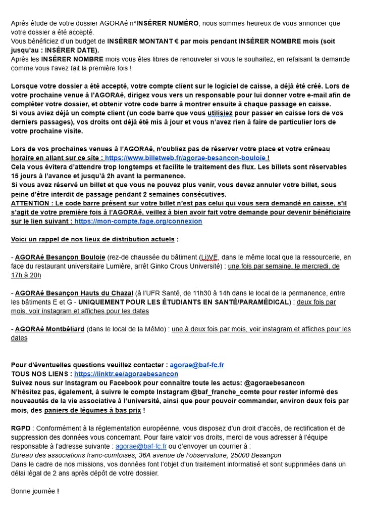 Après étude de votre dossier, si la demande a été acceptée, vous recevrez un e-mail de confirmation.