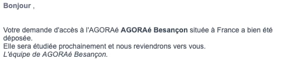 Si votre demande a bien été prise en compte, vous recevrez un mail tel qu’illustré ici.